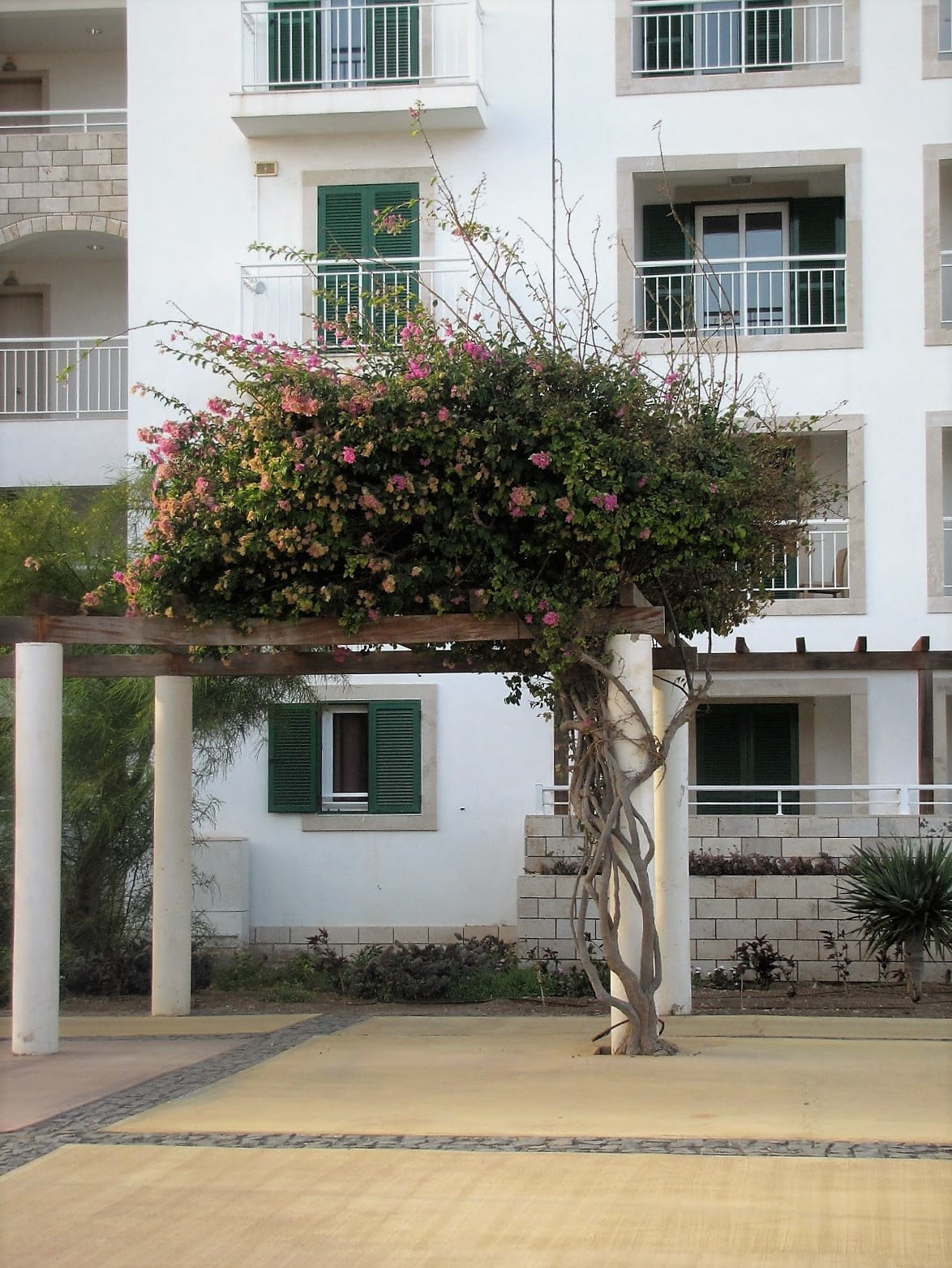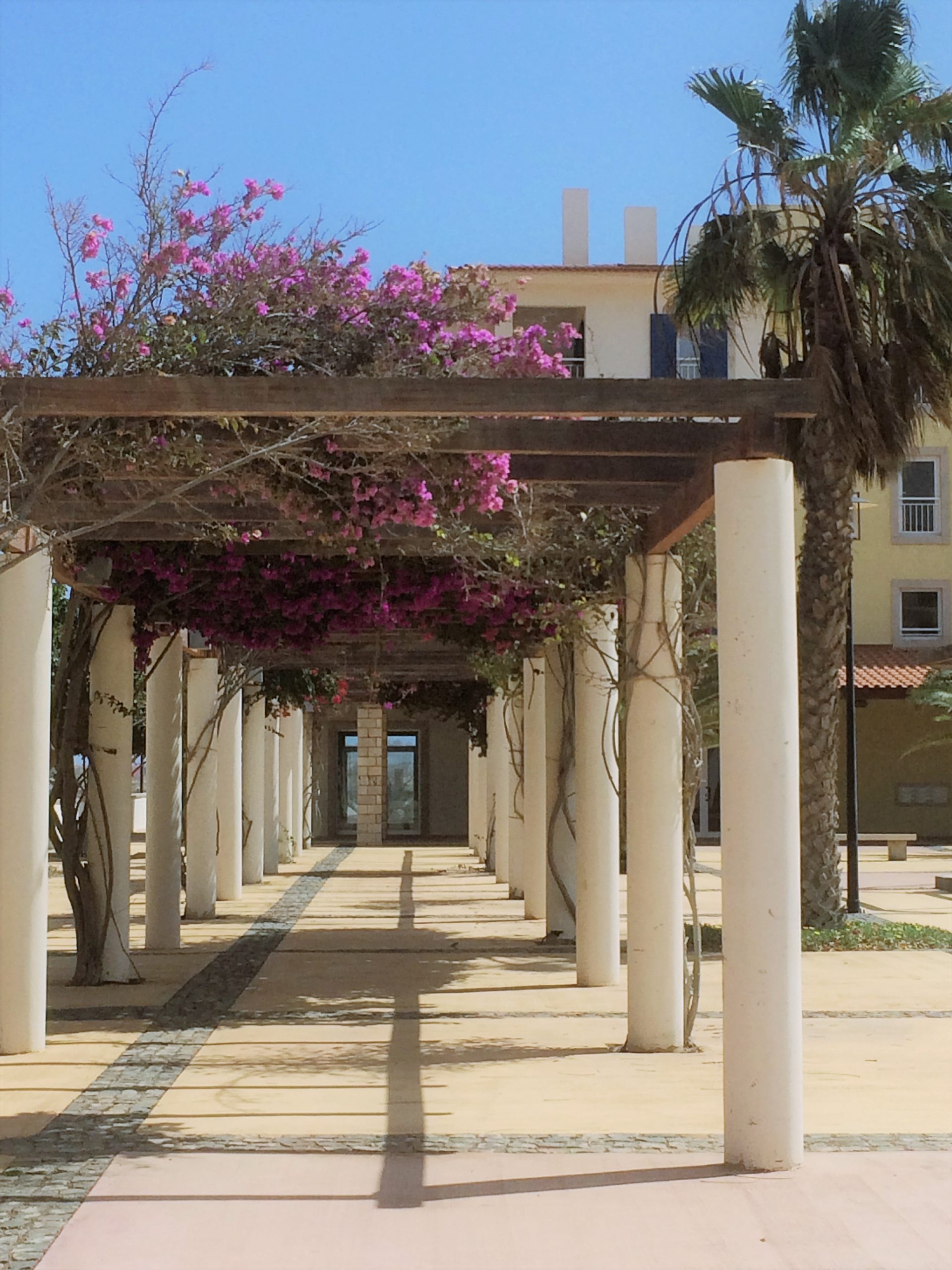 Jostain syystä (siisteys, hinta?) olimme valinneet huoneen isosta hotellikompleksista, Vila Verdestä, melko kaukana keskustasta ja rannasta. Hotellialue oli kuin autio lähiö,  hyvin vähän ihmisiä näkyi missään. Wifi ei toiminut huoneessa, vaan sitä käyttämään piti mennä noin puoli kilometriä respaan. Suunnilleen sama matka oli aamiaispaikkaan ja ”supermarketiin ”. Ensimmäisenä päivänä tutustuimme tuohon kauppaan, koska meillä oli huoneisto ja tarkoitus tehdä itsekin ruokaa.  Kävimme myös taksilla keskustassa katselemassa ympärillemme. Taksihinnat täällä oli vakio, eli hotellilta keskustaan maksoi aina saman verran. Ei siis tarvinnut arpoa kuljettajien kanssa hintaa, kätevää!