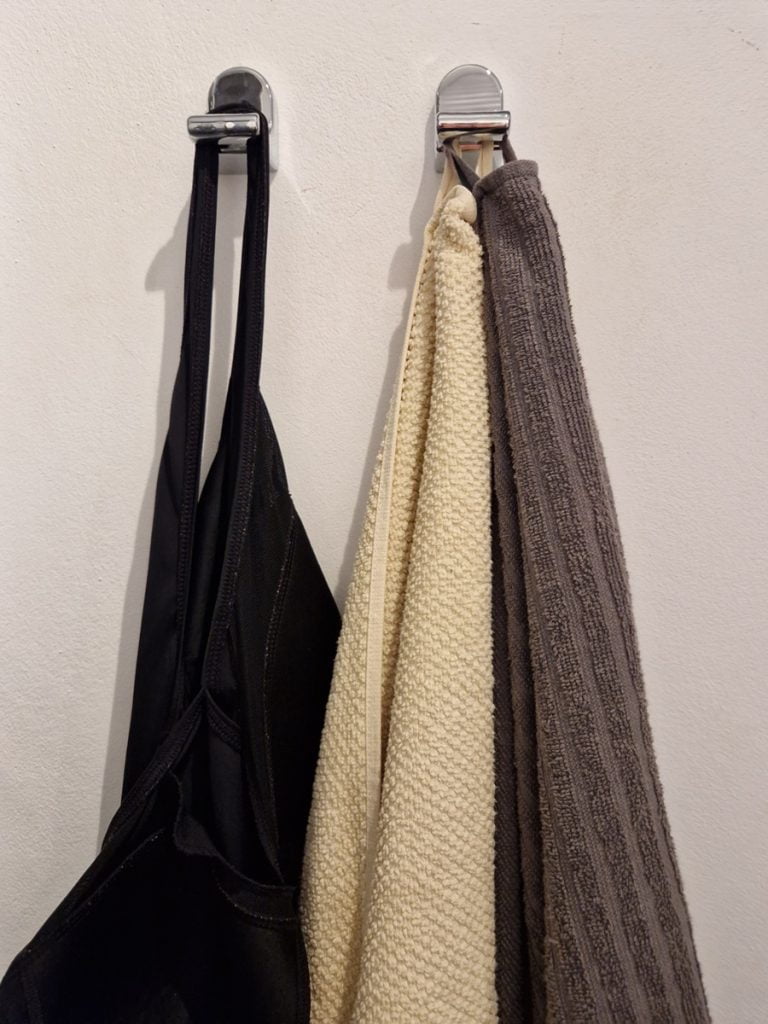 Eniten itse majoituksissa, olivatpa ne hintaluokaltaan mitä vain, ärsyttää se, että ei ole laskutilaa eikä naulakoita tai koukkuja säilytykseen. Kylpyhuoneeseen tarvitaan mielestäni pyyhkeitten lisäksi myös koukkua kaikelle muulle mitä vaan voi roikottaa, varsinkin jos ei ole paljoa laskutilaa. Uimapuku ja bikinit pitäisi molemmat saada jonnekin kuivumaan. Yleensä ne sitten roikkuvat jossain suihkun osasessa ja ovat tiellä, kun joku haluaa mennä suihkuun. Tämän vuoksi otan mukaan koukkuja ja koukkuripustimia.
