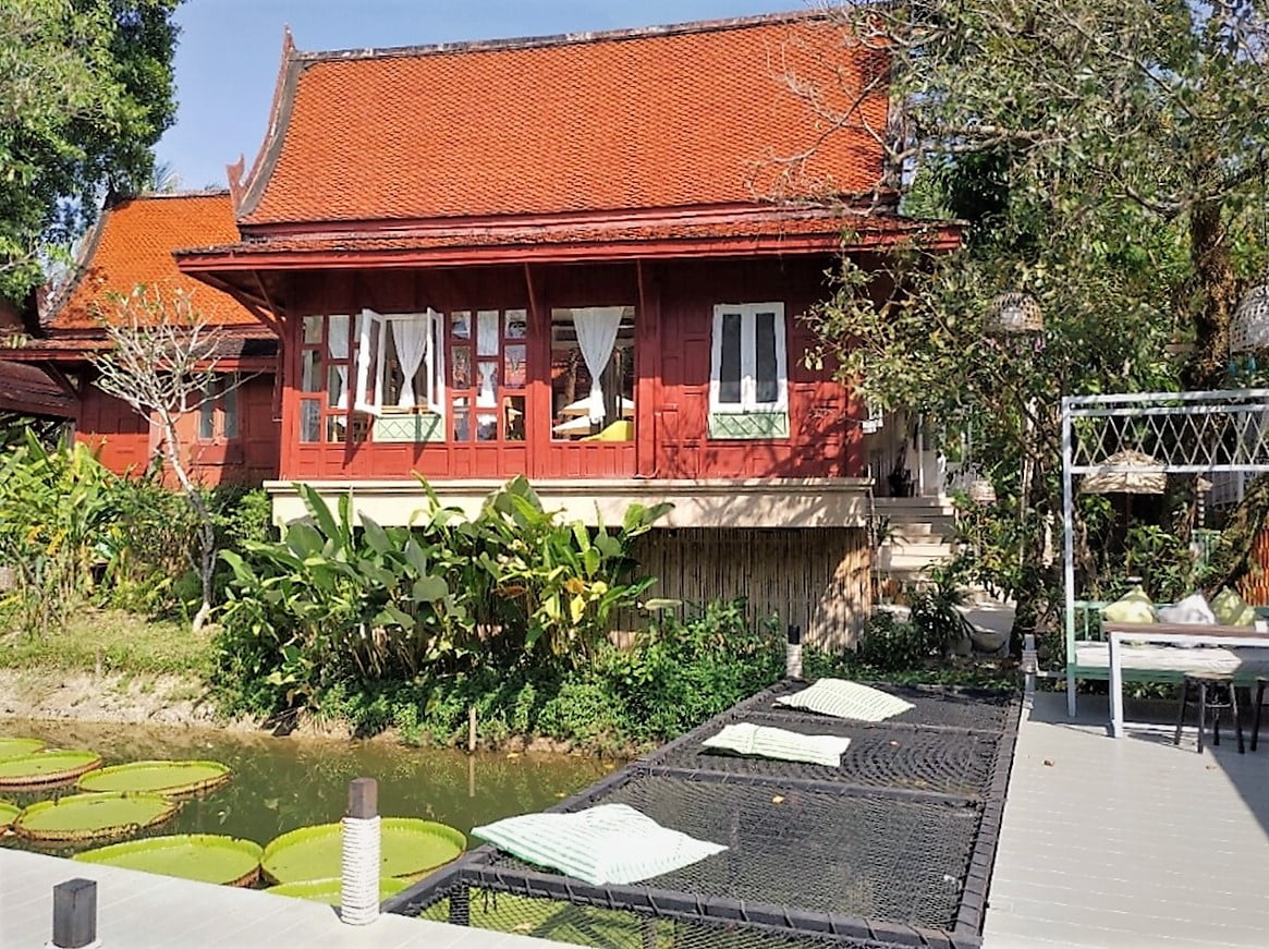 Emme kuitenkaan ajelleet suoraan hotellille, vaan poikkesimme matkan varrella suositussa kahvilassa ja selfieiden ottopaikassa, Ma Doo Buassa. Täällä voi kuvauttaa itsensä (maksusta tietenkin) lootuksen lehden päällä tai jopa ilmakuvan siitä kun makaat lehtien keskellä veneessä. Mehän emme tämmöisiin höpsötyksiin lähteneet emmekä edes nauttineet kahvilan antimista. Olin etukäteen ottanut selvää tarjonnasta ja todennut sen monien kommenttien perusteella kalliiksi ja keskitasoiseksi.
