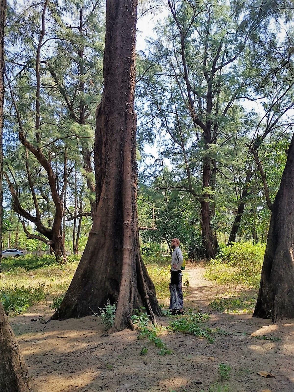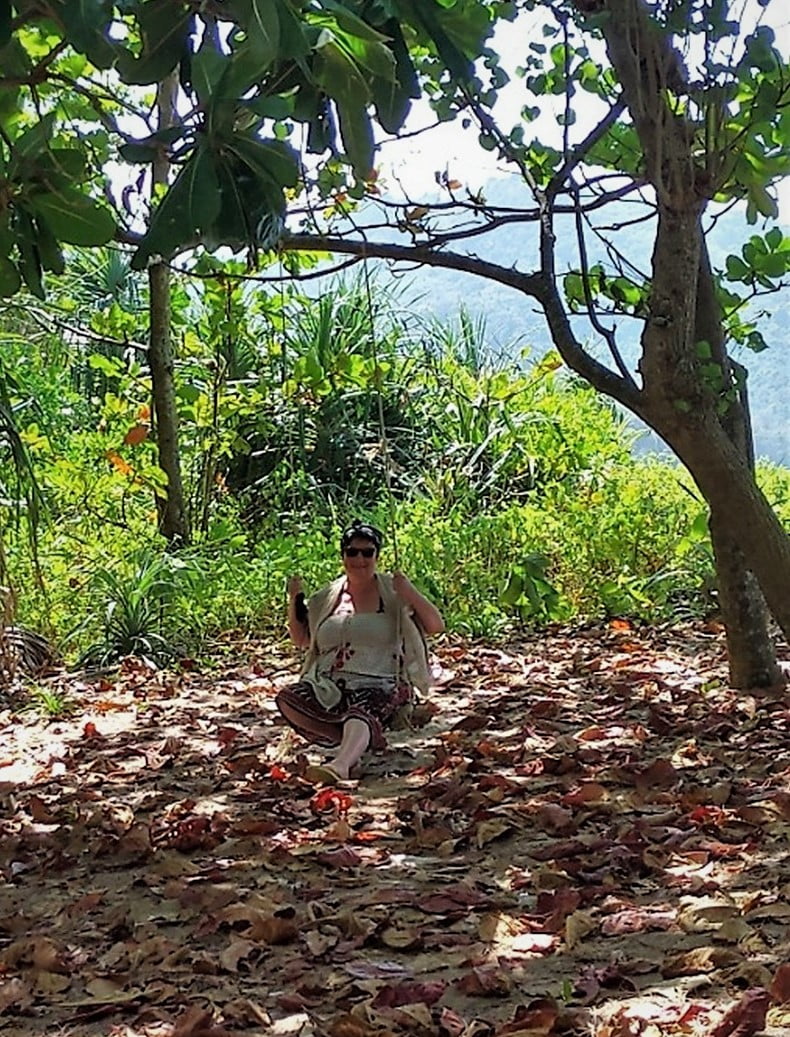 Nai Yang Beach ja varsinkin sen kansallispuisto Sirinat on enimmäkseen paikallisten suosiossa. Siellä grillataan, otetaan evästä ja juomaa mukaan ja istuskellaan puitten alla. Tai pötkötellään riippukeinussa. Pari keinuakin löytyy, kokeilin toista löytämääni. Ihan maahan asti en pyllähtänyt, vaikka oksa aika lailla taipuikin.
