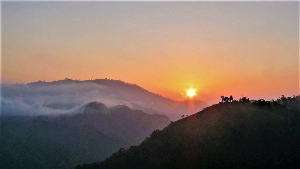 Päätinkin sitten seuraavana aamuna nousta ylös saman tien, jos herään tähän ääneen. Näin kävi, ja istuin parvekkeellamme 5.20 lähtien seuraamassa auringon nousua ja kuuntelemassa ensin munkkien hyminää laaksossa, sen jälkeen koululaisten jumppatunnin laulua. Koulut alkavat kuulemma klo 6 ja päättyvät klo 13-14. Ja jokainen aamu aloitetaan ulkona laulamalla ja voimistelemalla. Tämä on paras muistoni Sri Lankasta (päivitetty vuonna 2022 parin vuoden takaisen toisen Sri Lankan matkan jälkeen).