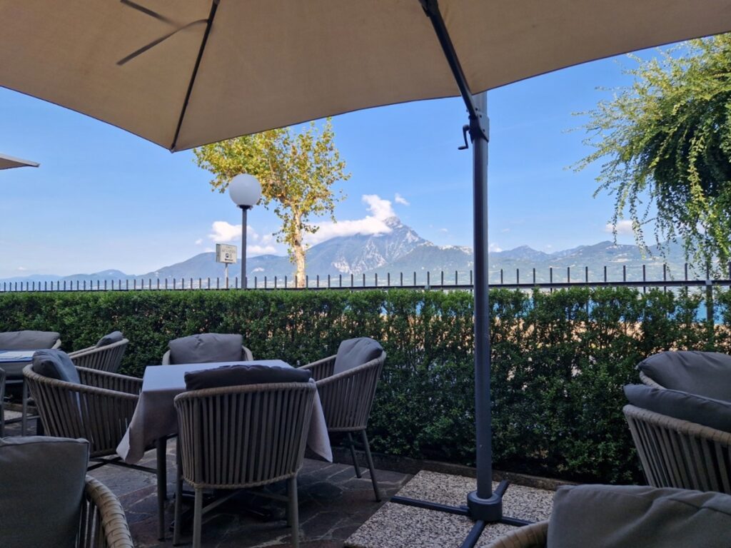 Meidän ei tullut mentyä sisäpihalle eikä kerrosten väliseltä tasanteelta ulos, vaikka niissä näytti olevan viihtyisät tilat istuskeluun. Ehkä pidempään majoittuessa ehtisi istuskelemaankin 🙂 Enemmän tietoa Albergo del Gardasta löytyy Booking.com:ista. *