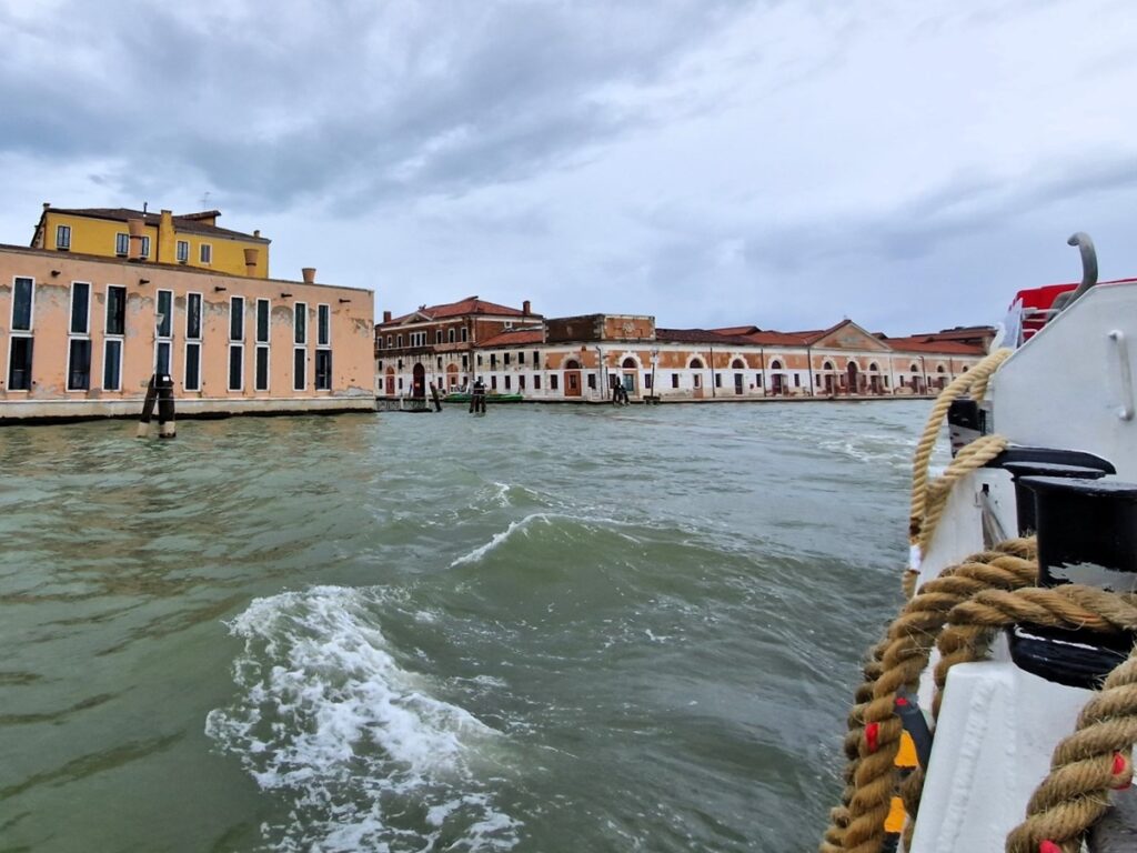 Olimme aamulla tulleet mantereelta rankkasateen vuoksi taksilla Venetsian saarelle. Nautimme pikaisen aamiaisen heti hypättyämme bussista Piazzale Romassa. Tarjolla oli muutama syötävää myyvä koju. Sen jälkeen lähdimme venebussilla kohti majapaikkaa, jonne onneksi pääsimme jo aamupäivällä eikä vasta klo 15, joka oli sisäänkirjautumisaika. Kotiuduimme hetken airbnb-paikassamme ja lähdimme sitten samasta laiturista kohti Buranoa.